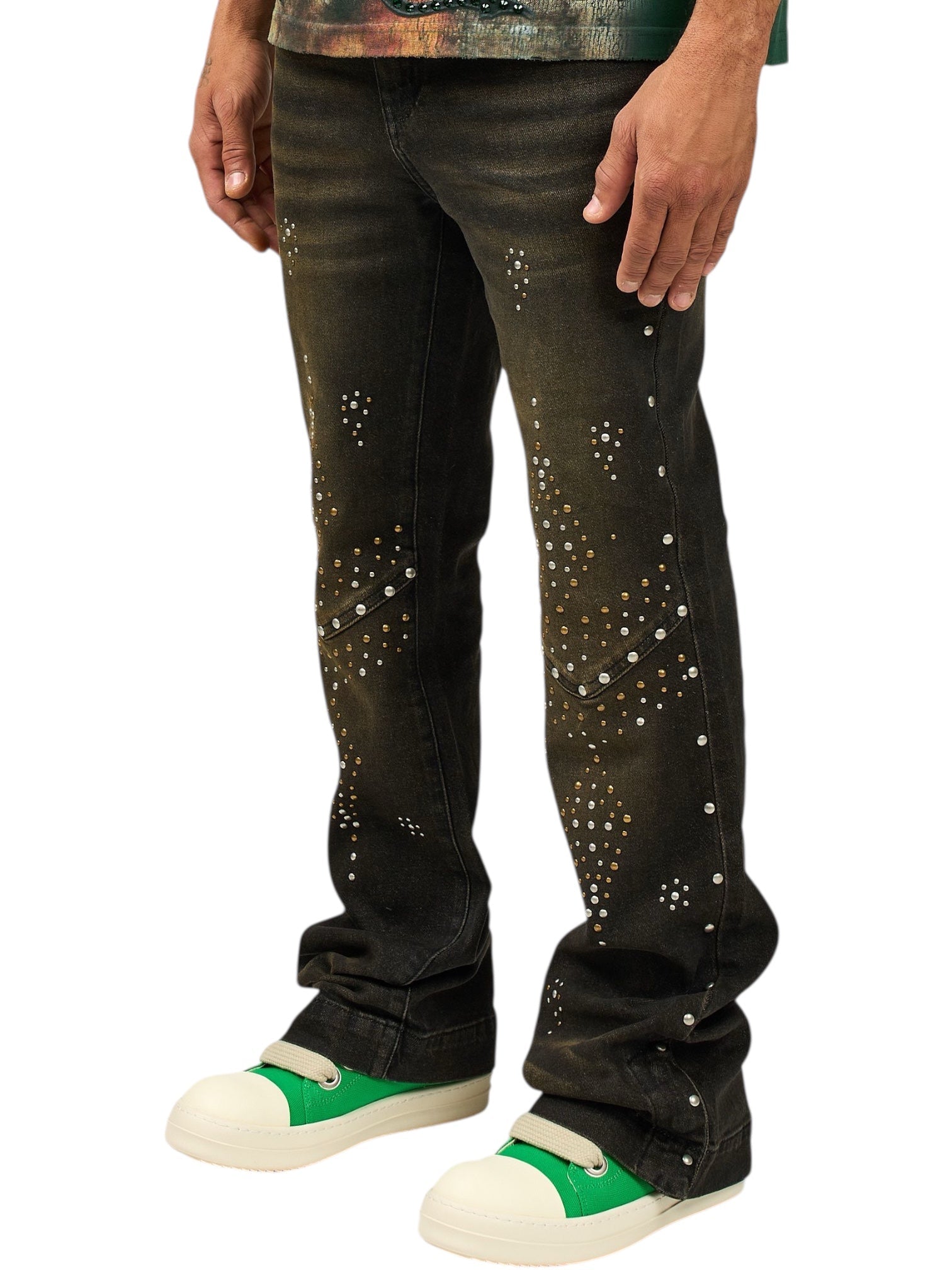 Duaa North Washed Denim delivers a refined take on statement streetwear, combining premium craftsmanship with bold visual detail. Constructed from 100% cotton, the denim features a washed finish that creates natural texture and depth throughout the fabric. Custom rhinestone detailing is carefully placed to add a controlled shine, elevating the overall look without overwhelming the design. The balance between the rugged wash and the polished accents gives the piece a distinctive edge that stands out in any setting.