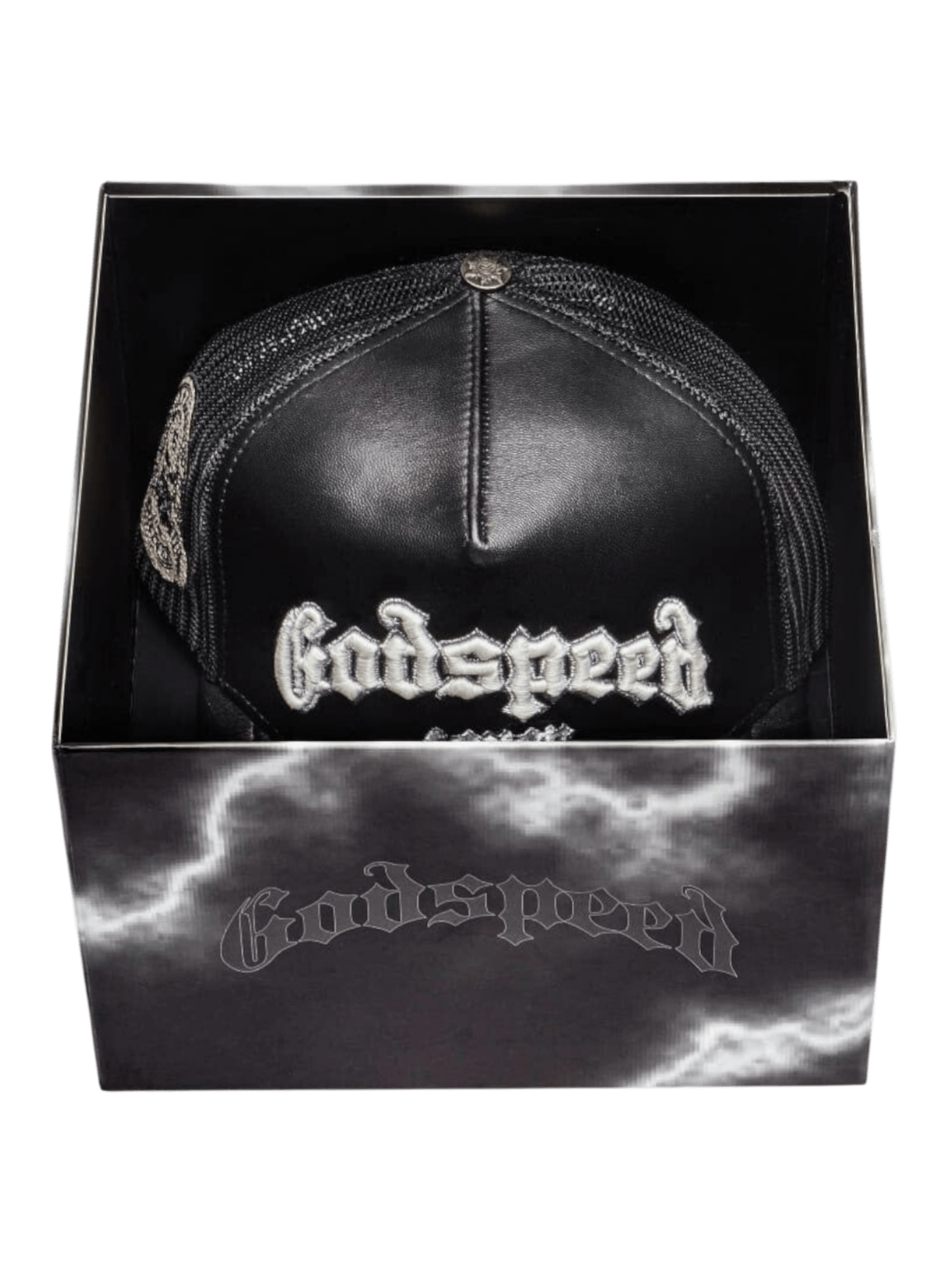 The Godspeed 4ever trucker hat now arrives with a luxurious leather build and is packaged in a handy, portable case. Enjoy superior style with this one-of-a-kind hat.