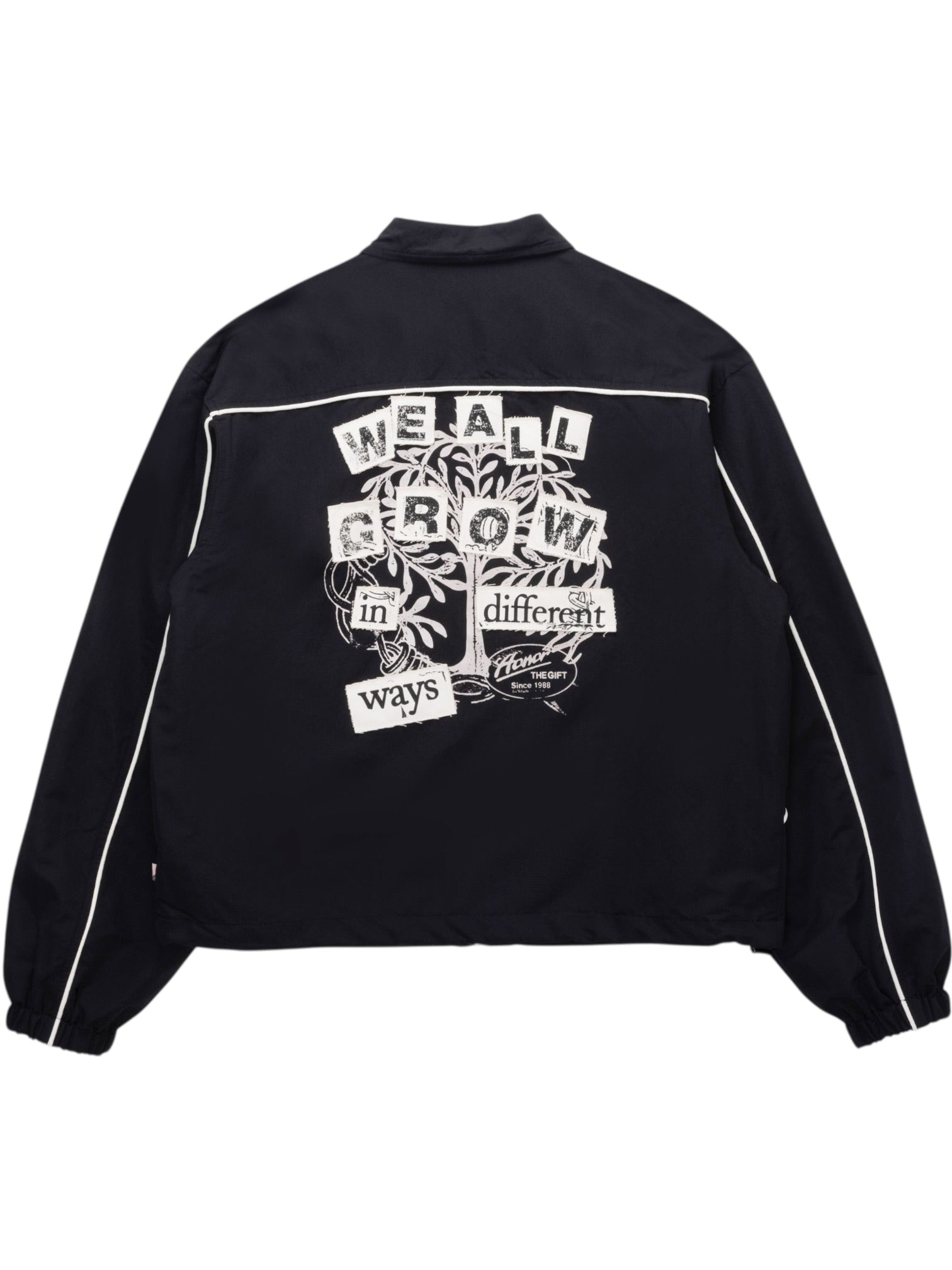 Made from a durable blend of 96% polyester and 4% nylon, the jacket offers a lightweight yet resilient build designed for everyday wear. The smooth finish and thoughtful detailing reflect the brand’s commitment to growth, identity, and intentional design. It’s a versatile outer layer that brings both style and meaning to your wardrobe.
