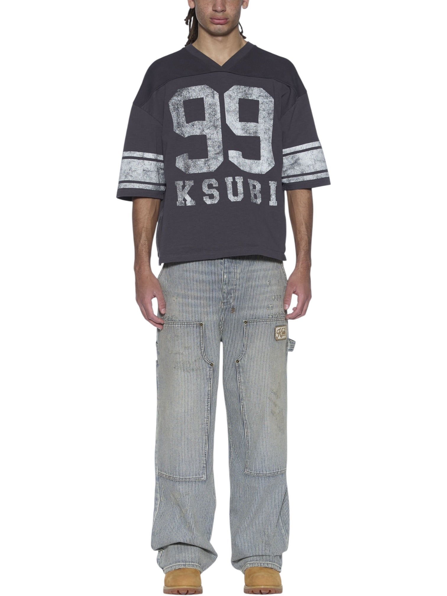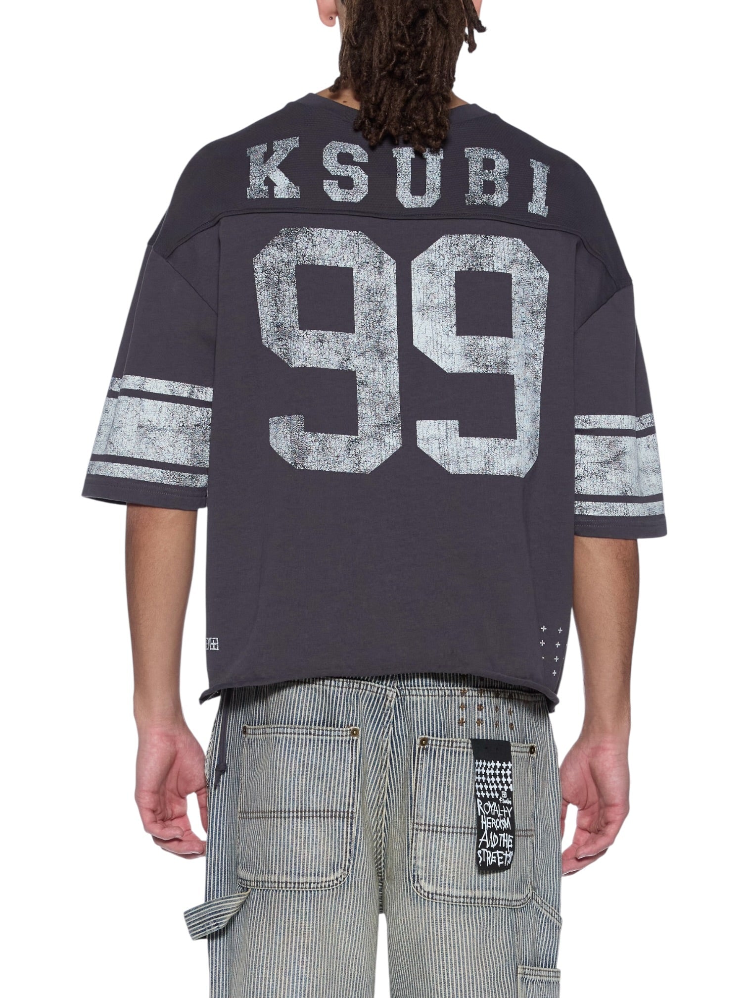 True to Ksubi’s identity, the jersey is finished with distinctive brand signatures including the T-box logo, 4x4 cross embroidery on the back, and branded hardware. A raw back hem with the iconic rats tail detail reinforces its edgy character. Crafted from 100% cotton with no stretch, the Halftime SS Duke Jersey blends structure, comfort, and statement design in a modern streetwear silhouette.