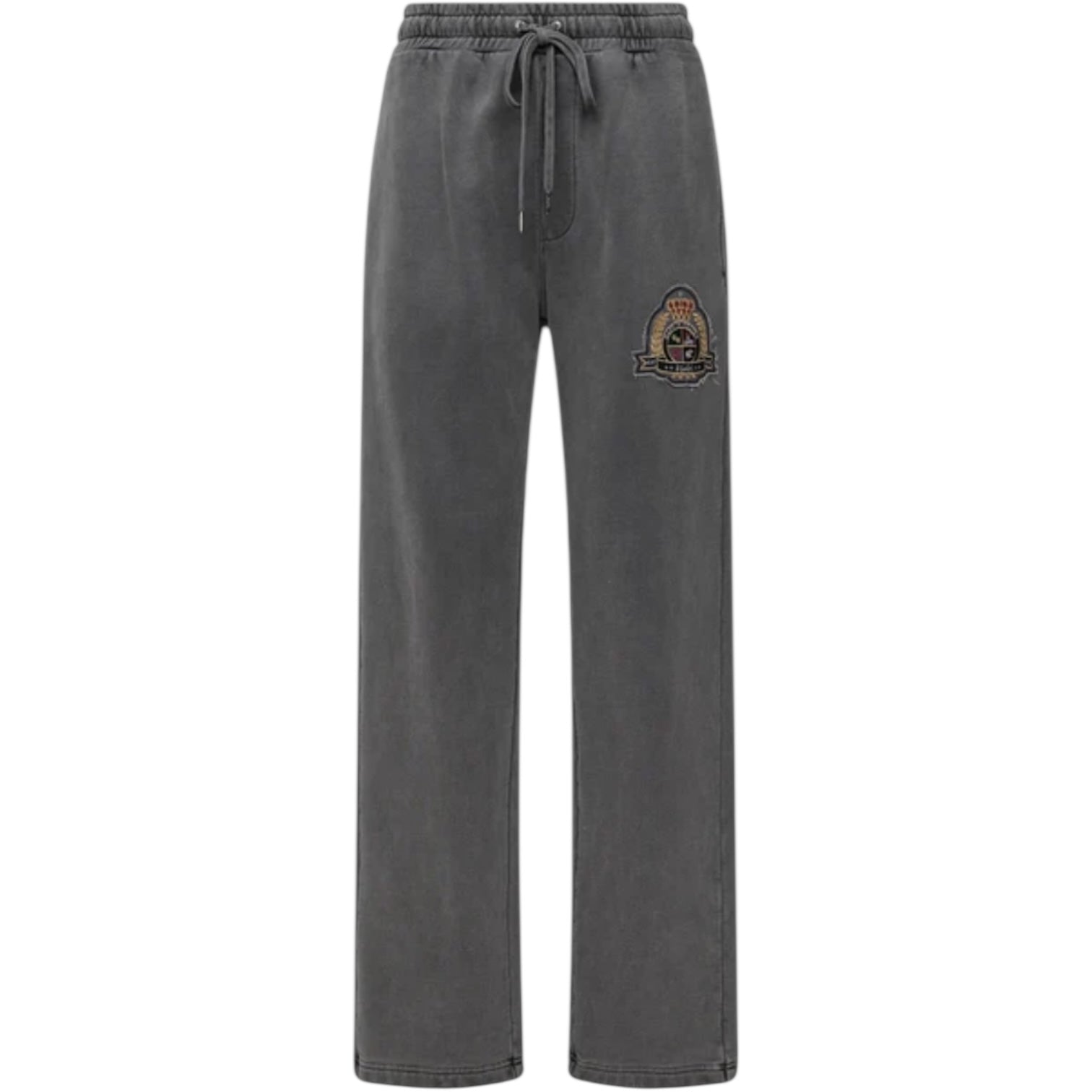 The Krest Synthesis Trak Pant Charcoal is a mid-rise straight leg track pant with an elasticated waistband and drawcord. Made from premium loopback fleece in a faded charcoal colourway, it features welted zip-up pockets, back patch pockets, seasonal Ksubi embroidery, an appliqued patch on the left leg, and is finished with signature T-box embroidery and Ksubi branded hardware.