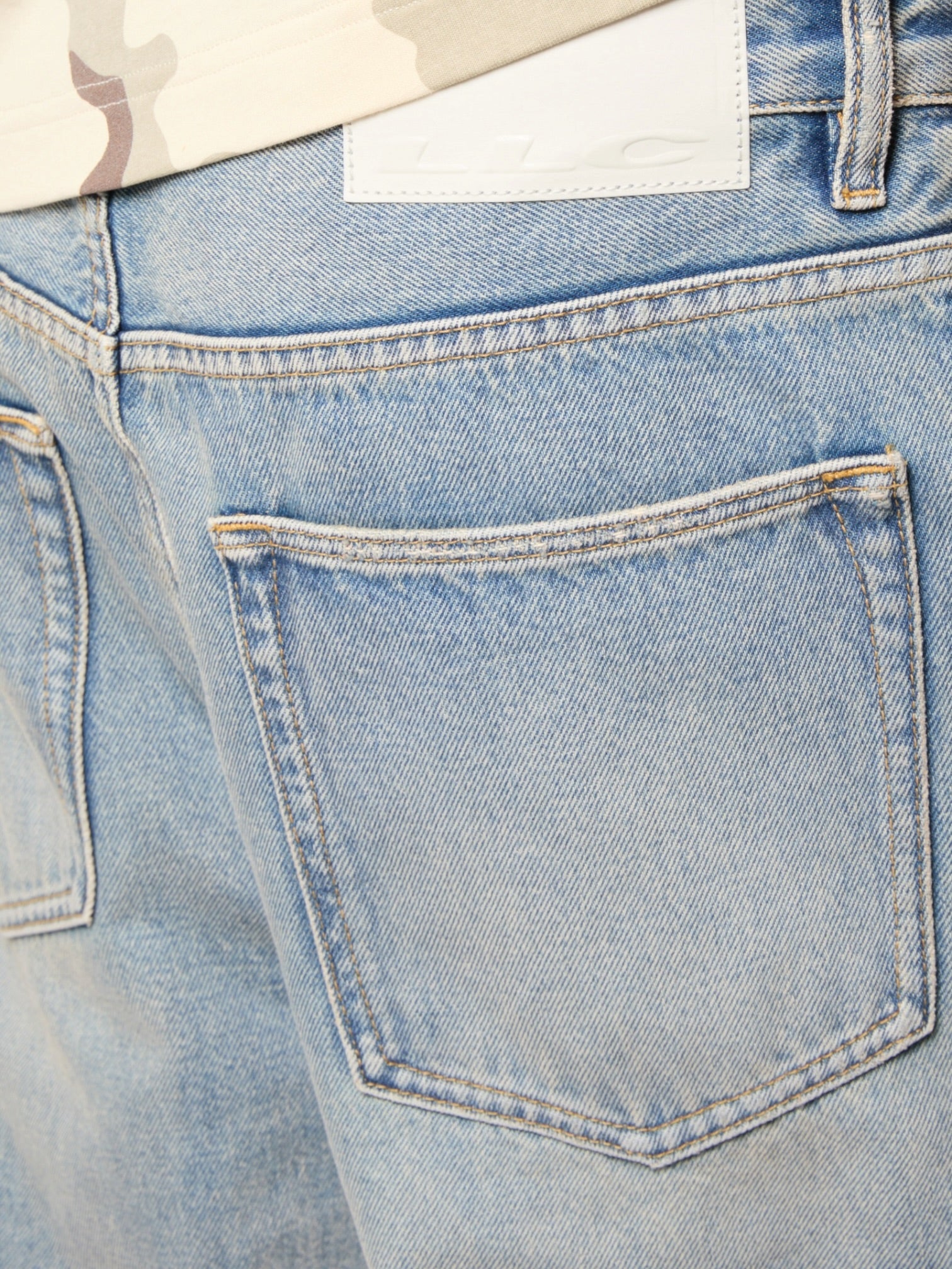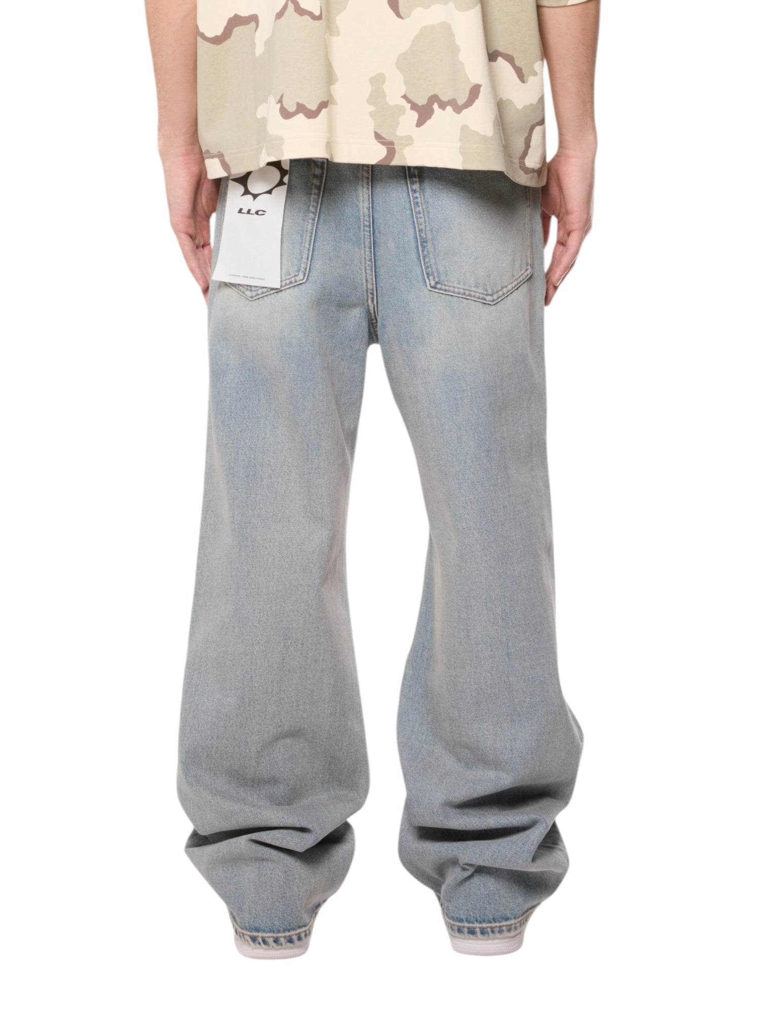 LLC Loose Straight Vintage Dirty Indigo is built with a relaxed mindset, drawing from classic denim silhouettes and reworking them with a worn, time-aged aesthetic. Made from 100% cotton, the fabric has a rigid, authentic feel that holds its shape while gradually softening with wear. The dirty indigo wash introduces a vintage character, featuring subtle fading and lived-in tones that give the impression of years of natural use without heavy distressing.