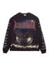 This limited-edition All Human long sleeve tee features a striking front graphic of a metallic globe against a night-city backdrop, paired with bold metal-inspired ALL HUMAN lettering across the chest. Both sleeves carry sharp, skeletal-style prints, with a matching logo hit on the back. Crafted from 100% cotton with a ribbed crewneck, it delivers comfort with a heavy streetwear edge and collectible graphic detail.